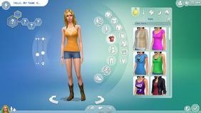 Clicking on the Sim's body makes this menu visible. This will also show the sliders for muscle tone and fitness/fatness sliders. It is split into seven subcategories. All, except the first, are clothing categories.